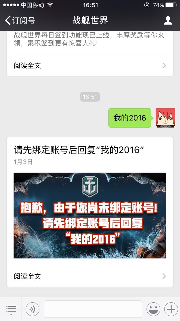 没绑定过的朋友输入“我的2016”会出现如下情况,只需点进去绑定即可!