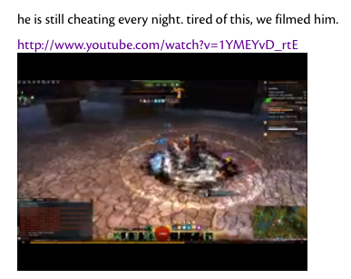 事情是这样的,17 天前,有人在《激战 2》的官方论坛发帖,说遇到了作弊玩家。嗯,大意是工会遇到作弊者,短短 15 分钟损失了三百多点,不!能!忍!啊!!!于是楼主表示,他愿意出 50 欧让官方处置作弊者:“停他账号!封他 IP!回来一次封一次!”