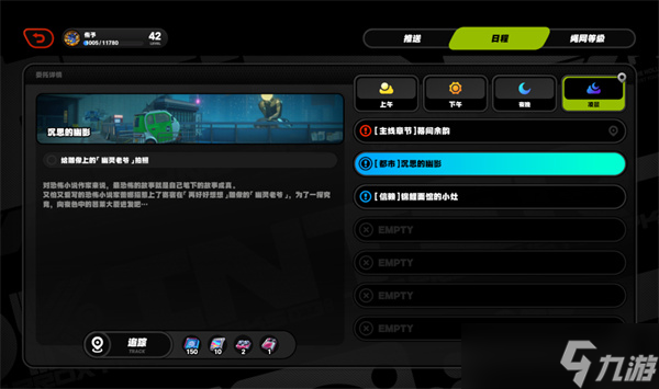 时间机制介绍完成副本、任务或其他相关事件后,游戏时间会自动进入下一阶段。此外,在录像厅一楼的沙发或二楼的床上休息,可以快速度过一天(从晚上变成白天)。