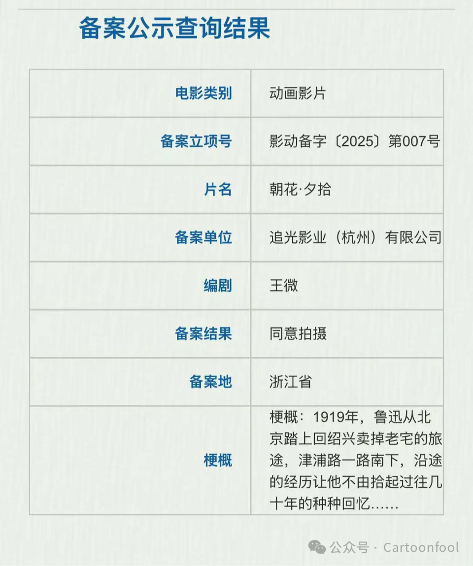 并且在“追光动画于洲:相信未来中国电影市场会达到千亿规模”一文中还有上映的时间表中出现了动画电影《三国第一部:争洛阳》、《朝花·夕拾》、《水浒1:风雪山神庙》的模糊海报图,